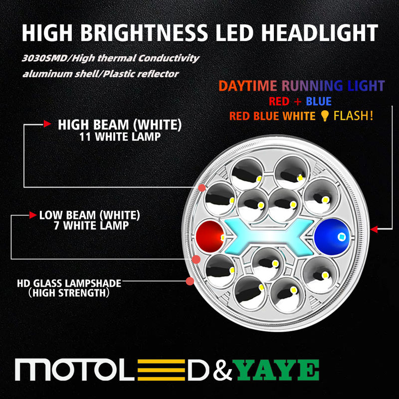 | বিশেষভাবে তুলে ধরা: | মোটরসাইকেলের উচ্চ নিম্ন হালকা হেডলাইট,5.75 ইঞ্চি মোটরসাইকেল হেডলাইট,লাল নীল ফ্ল্যাশ মোটরসাইকেলের হেডলাইট |
