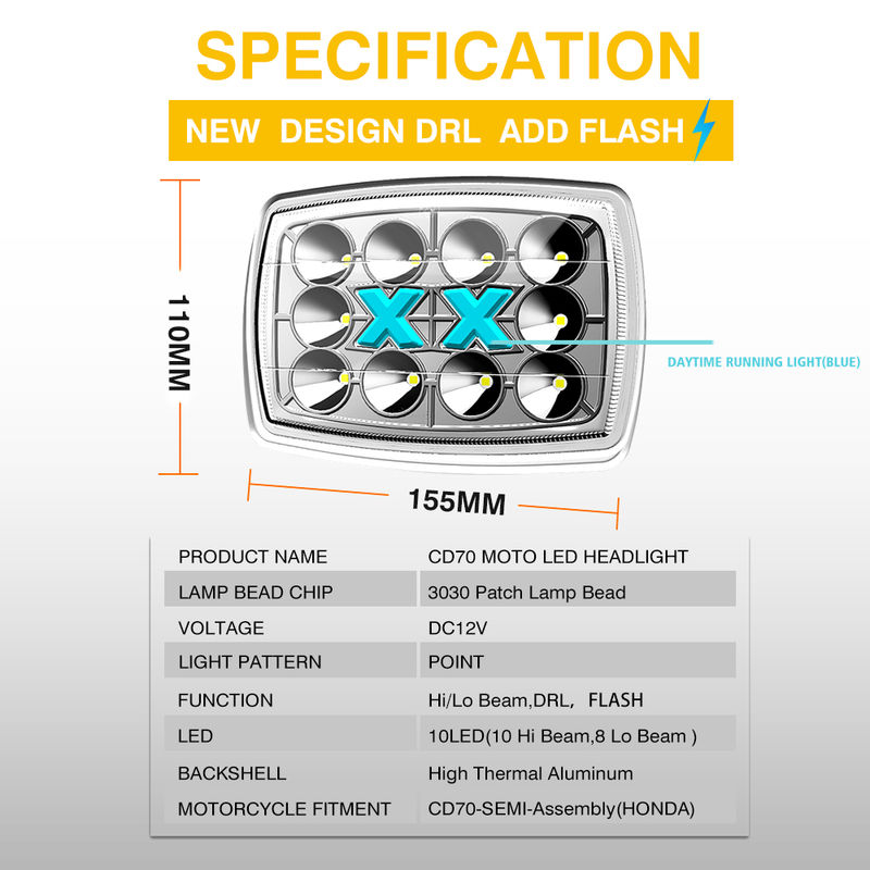 | বিশেষভাবে তুলে ধরা: | 12V মোটরসাইকেল LED হেডলাইট,DRL সহ CD70 LED হেডলাইট,মোটরসাইকেলের উচ্চ নিম্ন হালকা হেডলাইট |