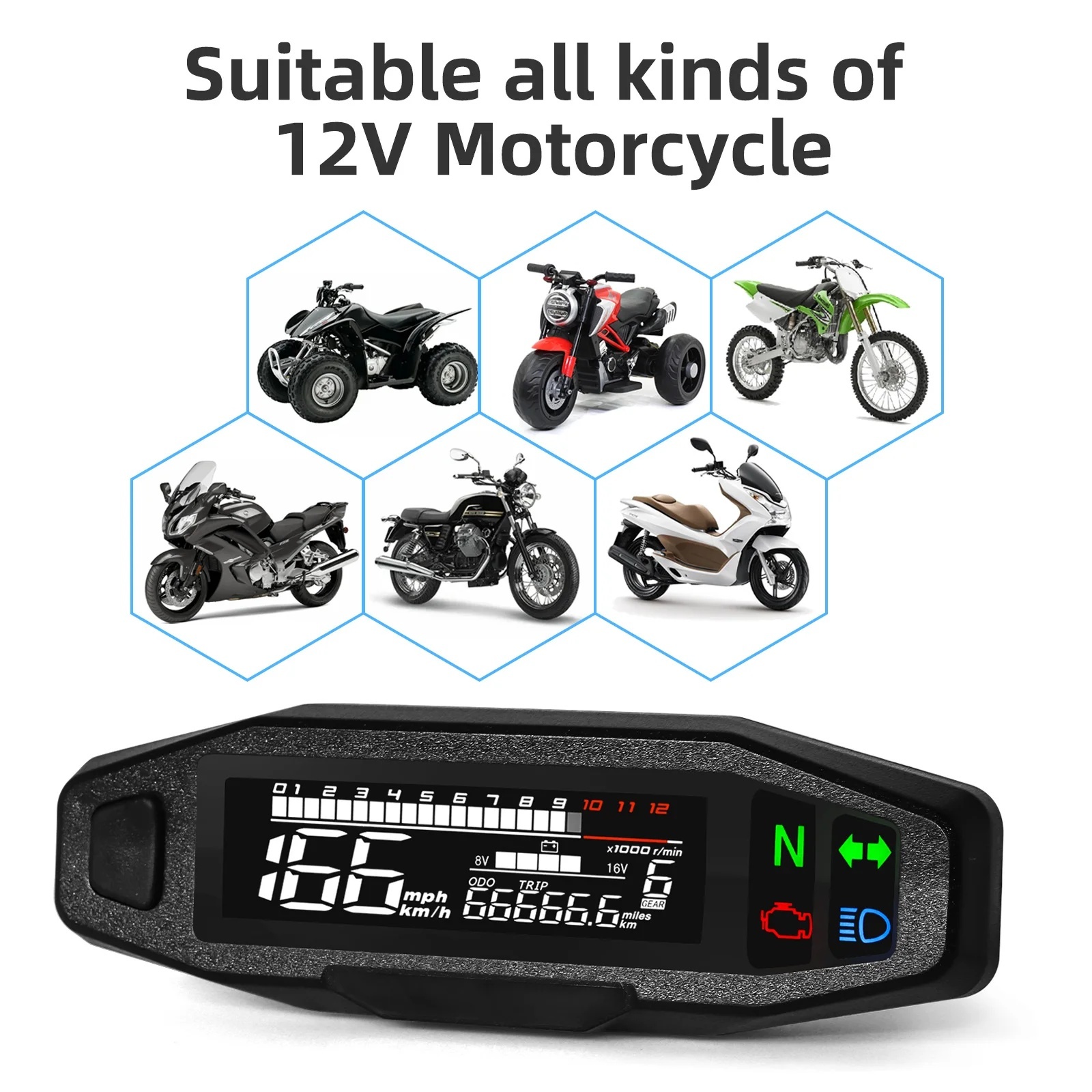 4.উন্নত বহু-কার্যকারিতা: মোটরসাইকেল উত্সাহীদের জন্য একটি সম্পূর্ণ সমাধান হিসাবে ডিজাইন করা, এই মিটার ডিসপ্লে একটি ওডোমিটার, স্পিডমিটার এবং ট্যাকোমিটার হিসাবে কাজ করে,আপনাকে একসাথে একাধিক গুরুত্বপূর্ণ মেট্রিকগুলি পর্যবেক্ষণ করতে সক্ষম করে.