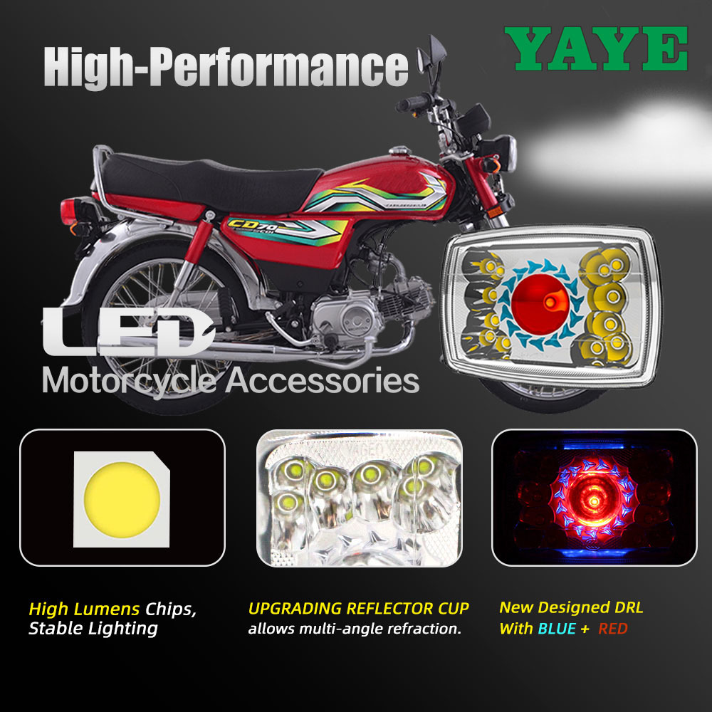 YAYE ক্লাসিক পণ্য CD70 CG125 বিল্ট-ইন সেমি-অ্যাসেম্বলি 18 ল্যাম্প রেড অ্যাঞ্জেল আই DRL মোটরসাইকেল LED অ্যাক্সেসরি হেডলাইট 6