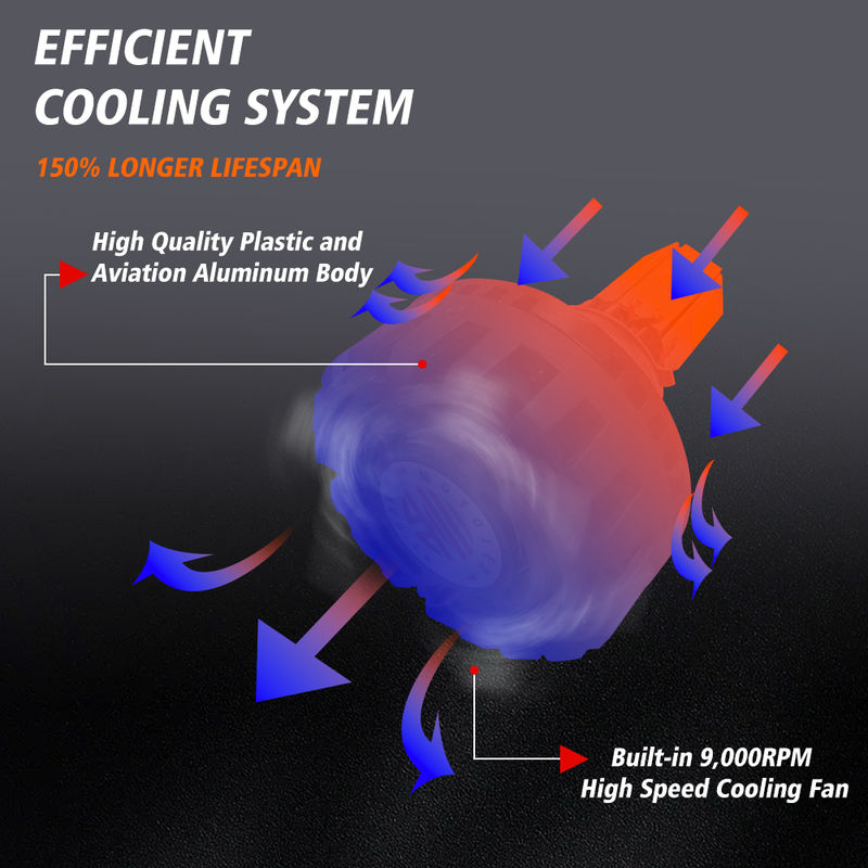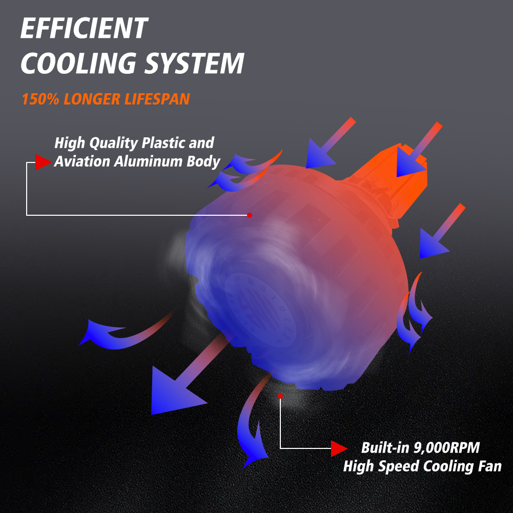 হাই স্পিড মিউট ফ্যান 9,000RPM এবং শেল এর ফিন ডিজাইন একটি কার্যকর কুলিং সিস্টেম গঠিত, IP67 জলরোধী, 50 এরও বেশি,000