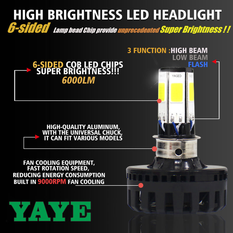 ওয়ারেন্টি: 12 মাস পণ্যের নাম: 6 সাইড ল্যাম্প মরীচিকা চিপ মোটরসাইকেল ফ্যান শীতল হেডলিগ